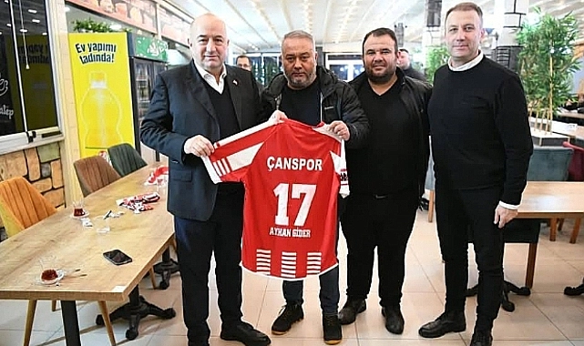 Çanspor Kulübü Başkanı Sedat Boduroğlu, ziyaretin anısına Ayhan Gider ve Ömer Faruk Göktürk’e Çanspor forması hediye etti.