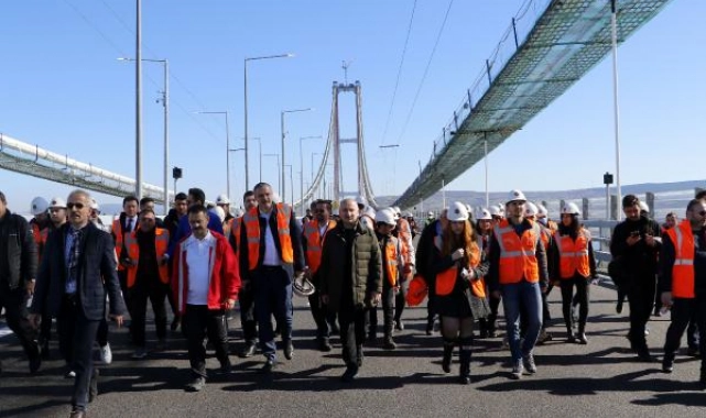 Asya ile Avrupa kıtalarını Çanakkale Boğazı'nda ilk kez birbirine bağlayan 1915 Çanakkale Köprüsü'nden yürüyerek geçtiklerini hatırlatan Karaismailoğlu, "Kesintisiz bir şekilde Asya'dan Avrupa'ya geçerek tarihi anlara tanıklık ettik. Marmaray gibi İstanbul Havalimanı gibi Avrasya Tüneli gibi Yavuz Sultan Selim ve Osmangazi köprüleri gibi Türkiye Cumhuriyeti tarihindeki en önemli ulaşım projelerinden birini daha başarıyla tamamlıyoruz ve tarihe not düşüyoruz. Bir hafta sonra 26 Şubat 2022 tarihinde de Sayın Cumhurbaşkanı'mızın teşrifleriyle köprümüzü aziz milletimizin ve dünyanın hizmetine sunacağız" dedi.