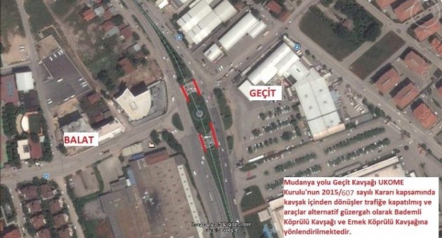 Bursa’da ulaşım meselesini köklü çözüm üretmek maksadıyla yeni yollar, köprü ve kavşaklar ile raylı sistem yatırımlarına ağırlık veren Büyükşehir Belediyesi, diğer taraftan trafiğin zaman zaman tıkanma noktasına geldiği bölgelere de el attı. Bursa–Mudanya karayolu üzerindeki Teknik Malzeme Geçit Kavşağı, doğu-batı aksına dönüş yapan araçlar sebebiyle günün büyük bölümü düğümlenme noktasına gelirken, Emniyet Müdürlüğü’nden gelen talep üzerine konu son UKOME toplantısında ele alındı. Trafiğin tıkanmadan seri şekilde kuzey-güney aksında akması için gerekli tedbirlerin ele alındığı toplantıda, kavşağın doğu–batı dönüş akslarının trafiğe kapatılması kararlaştırıldı. Karara göre dönüş yapacak araçlar Bademli Kavşağı ile Emek Kavşağı’na yönlendiriliyor.