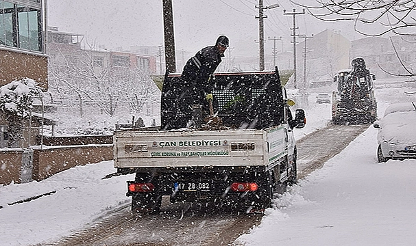 Çan’da yoğun kar yağışı etkili oldu. Çan Belediyesi tarafından ekipler sahada, kar ile mücadele etti.