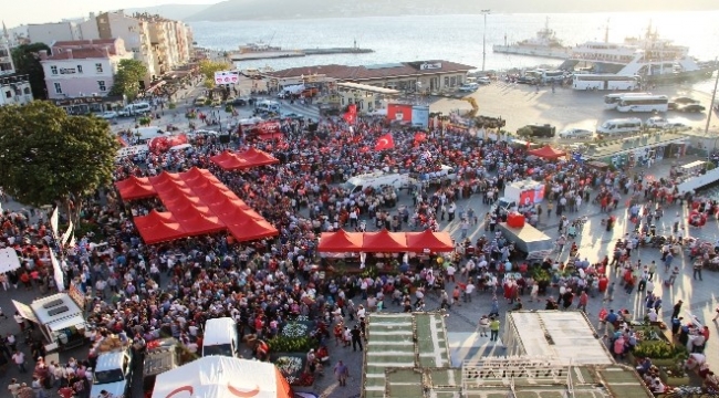 Çanakkale’de Demokrasi ve Şehitler Mitingi bayram havasında geçti. Binlerce kişi, Çanakkale İskele Meydanı’nda dev ekrandan İstanbul Yenikapı’daki mitingi izleyerek, destek verdi.