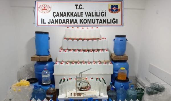 Çanakkale'de jandarmanın düzenlediği operasyonda, sahte içkiler ele geçirilirken, 1 şüpheli gözaltına alındı.
