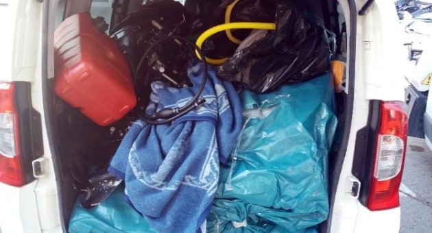 Çeşme Emniyet Müdürlüğü ekipleri, 13 Aralık tarihinde Ayasaran mevkisinde insan taciri olduğu şüphesiyle 1983 doğumlu V.H. adlı şahsı gözaltına aldı. V.H’ya ait 9’ar metrelik 2 bot, 30 beygir gücünde 2 benzinli motor, benzin bidonları, şişirme pompalar ve dalgıç kıyafetleri ele geçirildi.