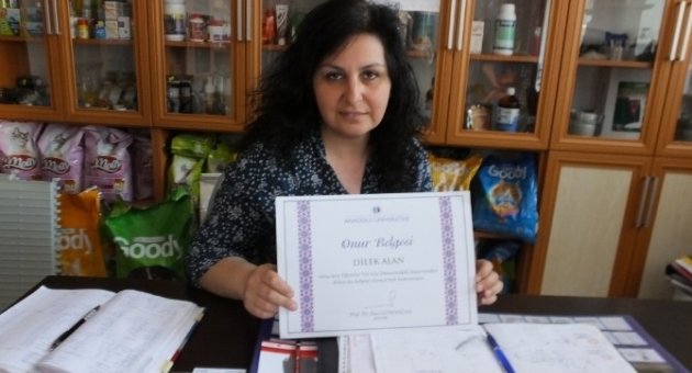 Burhaniye de, 10 yıl önce İşletme Fakültesini bitiren Dilek Alan, geçtiğimiz yıl, Pazar yerinde açtığı Pet Shop’ da daha iyi hizmet verebilmek için ikinci fakülteyi bitirmeye karar verdi. Anadolu Üniversitesi’nde Laborant ve Veteriner Teknikerliği bölümünü kazanan Alan, ikinci sınıfa geçerken, başarısından dolayı da onur belgesi aldı. Okumayı çok sevdiğini anlatan Dilek Alan,”Geçtiğimiz yıl Tarhal Pet Shop adlı işyerimi açtım. Burada kedi ve köpeklerle ilgili her türlü aksesuar ve mamaları satıyorum. Bundan 10 yıl önce İşletme Fakültesini bitirmiştim. Şimdi de işimi daha iyi yapabilmek için Laborant ve Veteriner Teknikerliği bölümüne kaydımı yaptırdım. Şu anda ikinci sınıfa gidiyorum. Okumayı çok seviyorum. Hayvanları çok seviyorum. İşimi de severek yapıyorum” dedi.