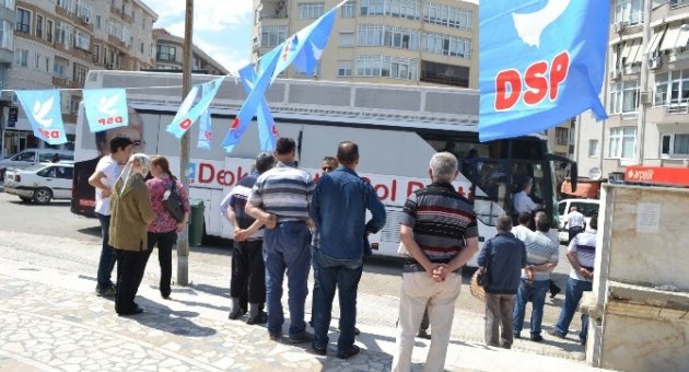Edirne’nin Keşan ilçesine milletvekili adaylarıyla birlikte gelen DSP Genel Başkanı Masum Türker, seçim otobüsüyle mitingin yapılacağı alana geldi. Cumhuriyet Meydanı’nda hazırlanan miting alanına gelen Türker, meydanı boş görünce otobüsle alandan ayrılarak parti binasına gitti. Burada ilçe yönetimiyle bir araya gelen Türker, AK Parti’ye ve diğer siyasi partilere yönelik bir takım eleştirilerde bulunurken, seçim politikalarıyla ilgili değerlendirmeler yaptı. İlçe binasında düzenlenen toplantıya da katılımın az olduğu gözlendi.