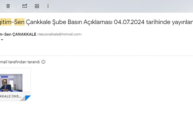 Türk Eğitim-Sen Çanakkale Şubesi Başkanı Resul Demirbaş’ın yerel basına gönderdiği ve "Türk Eğitim-Sen Çanakkale Şube Basın Açıklaması 04.07.2024 tarihinde yayınlanmak üzere" talimatıyla dile getirilmiş olan maili, demokratik kültürümüze ve basın özgürlüğüne karşı yapılmış ciddi bir ihlal olarak görmekteyiz. Bu olay, yerel basını şaşkınlığa ve rahatsızlığa sevk etmiştir.