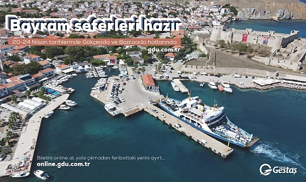 GESTAŞ Deniz Ulaşım A.Ş.’den yapılan açıklamada; “Gökçeada ve Bozcaada hatlarında Bayram Tarifesi hazır! Geyikli-Bozcaada Hattı'nda karşılıklı 8 olan sefer sayısı 16'ya, Gökçeada-Kabatepe hattında ise 6'dan 10'a artırıldı. Sefer saatleri için: https://www.gdu.com.tr/sefer-tarifeleri , biletini online almak için: https://online.gdu.com.tr veya Gestaş Mobil Uygulama” ifadelerini kullandı.