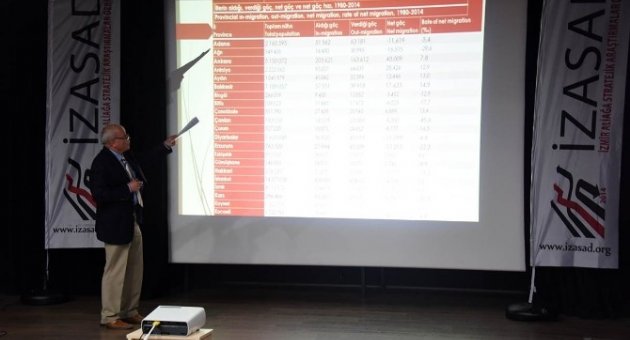 Konferansta Bekir Türkmen katılımcılara, genelde Türkiye’deki her il, özelde İzmir’de yaşanan göç hareketleri, Aliağa’da 2007-2014 yılları arasında yaşanan göç hareketleri, Aliağa’ya yoğun iş gücü arzı, Aliağa’da nüfusun nitelikli hale getirilebilmesi için alınabilecek önlemler konusunda sunum yaptı.
