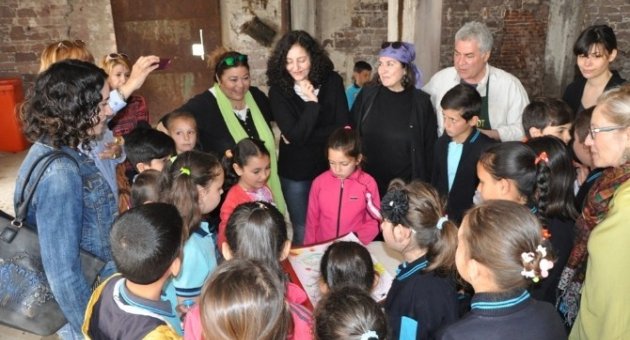 Öğretmenleri ile Ayvalık Belediyesine ait eski Kırlangıç fabrikasındaki atölyeyi ziyaret eden öğrenciler, yanlarında yaptıkları resimleri de getirerek, burada çalışmalarını sürdüren sanatçılara gösterdiler. Ressam abla ve ağabeylerinden resim teknikleri ve atölye çalışmaları hakkında bilgiler aldılar.