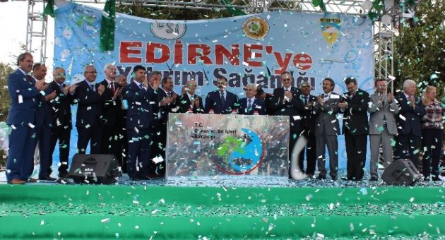 Bakan Eroğlu, düzenlenen toplu açılış ve temel atma merasiminde Edirne (Kayalıköy Barajı) İçmesuyu İsale Hattı ve Arıtma Tesisi İnşaatı, Lalapaşa 1 Göleti ve Sulaması, Keşan Mercan Göleti Sulaması, Merkez Tayakadın Göleti’nin aralarında bulunduğu 4 adet tesisin temellerini attı. Ayrıca, merasimde 20 adet taşkın koruma tesisinin de temeli atma töreni gerçekleştirildi. Bakan Eroğlu, açılış ve temel atma programı kapsamında Uzunköprü Karabürçek Göleti ve Sulaması, Lalapaşa Dombay Göleti ve Sulaması, Keşan Bahçeköy Göleti ile 5 adet tesisin daha açılışını yaparken, Orman Genel Müdürlüğü’nce yapımı tamamlanan Uzunköprü İlk Müdahale Ekip Binası ve Keşan Fidanlığı Tüpleme Hangarı ile yine Meteoroloji Genel Müdürlüğü’nce yapımı tamamlanan Yıldırım Tespit ve Takip Sistemi’nin de açılışlarını gerçekleştirdi. Temeli atılan ve açılışı gerçekleştirilen toplam 40 tesisin maliyetinin ise 176 milyon TL olduğu kaydedildi.