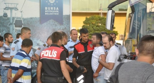 Edinilen bilgilere göre, İnegöl şehiriçi toplu taşıma otobüsü şoförü 33 yaşındaki O.B., Terminal mevkiindeki otobüs durağında yolcuların inip, binmeleri için durdu. Bu sırada seyyar kitap satışı yapan gençler, otobüsten inmek isteyen yolculara, daha otobüsten yere adım atmadan kitap satışı yapmak istediler. Otobüsün iniş kapısı önünde yoğunluk oluşması üzerine otobüs şoför O.B., kitap satışı yapan gençleri uyardı. Kitap satışı yapan 23 yaşındaki F.K.’nin karşılık vermesi üzerine tartışma çıktı. Tartışma kavgaya dönüşünce, şoför üzerindeki bıçağı seyyar satıcının üzerine doğru salladı. Genç, boynuna isabet eden bıçakla yaralandı.