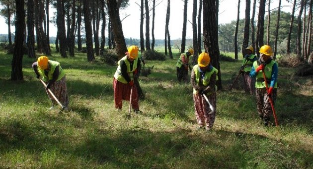 Bayramiç Orman İşletme Müdürlüğü bünyesinde 6 ay süreyle çalıştırılmak üzere alınan 210 işçi 1 Nisan tarihinden itibaren işbaşı yaptı. Orman işletme müdürlüğü merkezinde yapılan temizliğin ardından ilçe kenarlarında bulunan ormanlık alanlara götürülerek çalıştırılan 210 kadın ve erkek işçi, toplu halde temizlik ve düzenleme çalışması yapıyor. İşçiler orman işletmesi görevlileri gözetiminde çalışarak işi öğrenmeye çalışıyor. Piknik havasında geçen işte herkes istediği işi yapma özgürlüğüne sahip. Bayramiç Orman İşletme Müdürü İsmail Kır, fidan dikimi, ağaçlandırma ve bakım projeleri kapsamında çalıştırılmak üzere Toplum Yararına Çalışma Programı çerçevesinde 210 işçi alımın ardından 110 işçinin daha alınacağını ifade etti.